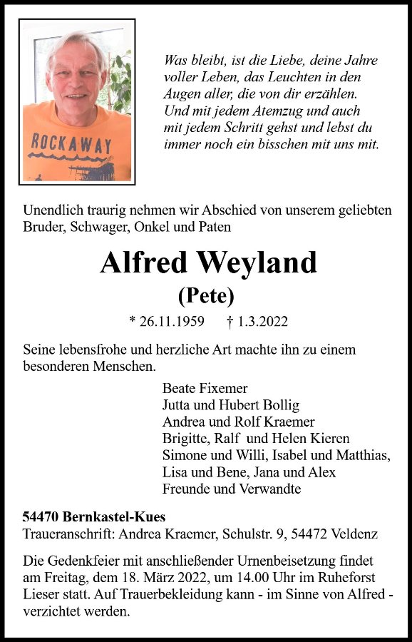 gestorben am 1. März 2022 in Bernkastel-Kues