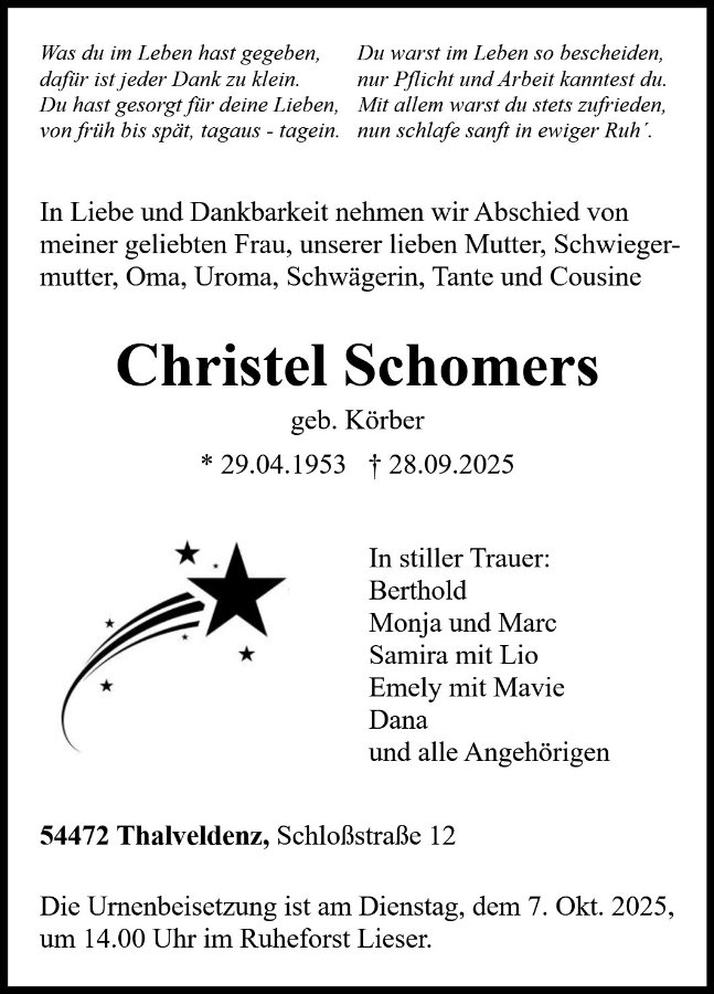 in dieser Zeit des Schmerzes wünschen wir Ihnen Kraft, den Verlust im Kreise Ihrer Liebsten zu verarbeiten. Als Zeichen unserer Anteilnahme und des Gedenkens entzünden wir dieses erste Licht. Möge diese Gedenkseite Ihnen helfen, Erinnerungen zu teilen und so das Andenken gemeinsam wachzuhalten.