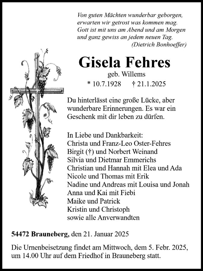 gestorben am 21. Januar 2025 in Brauneberg
