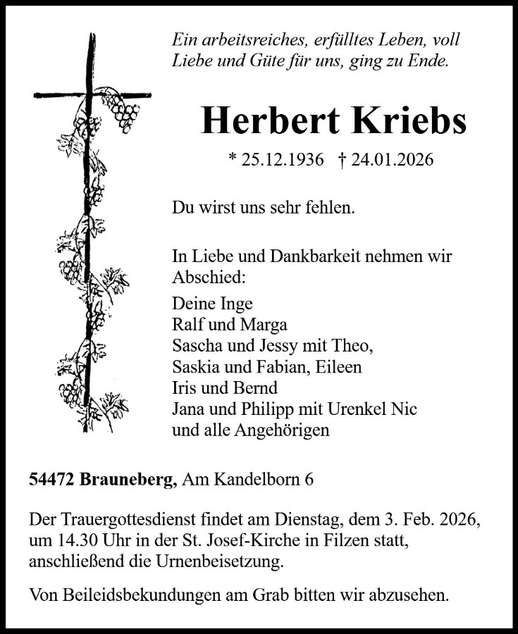 geboren am 25. Dezember 1936 in Filzen, jetzt Brauneberg