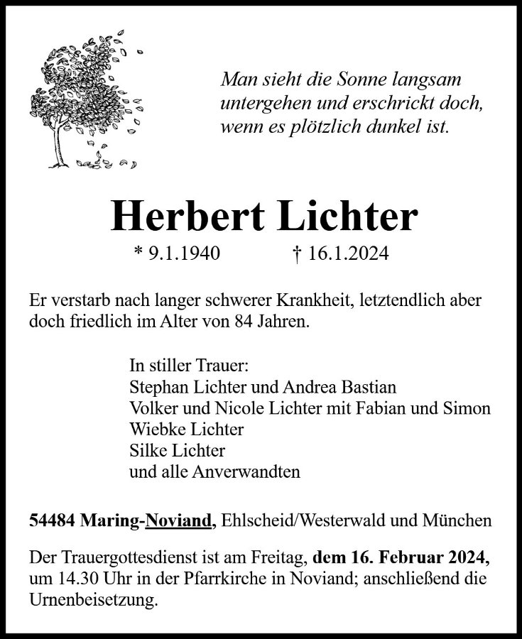 Herbert Lichtergestorben am 16. Januar 2024