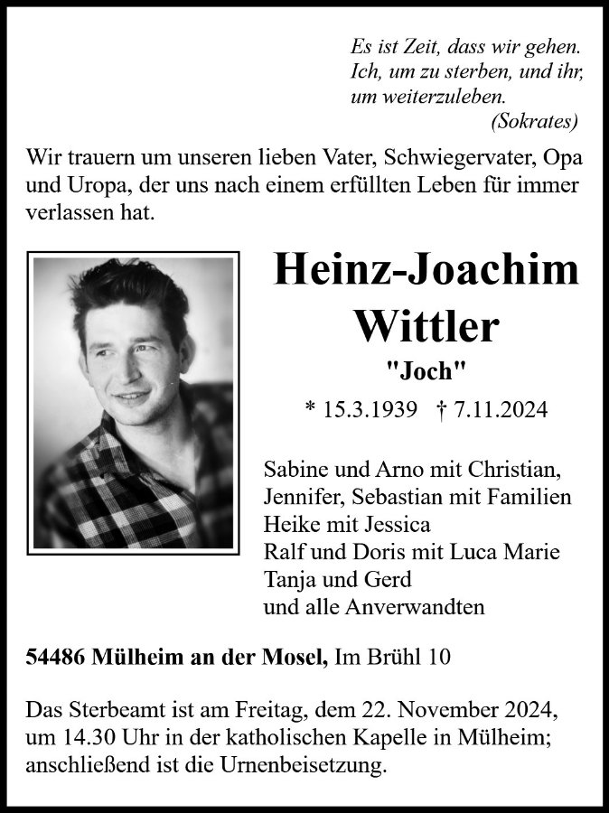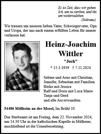 in diesen Tagen fühlen wir mit Ihnen und wünschen Ihnen von Herzen, dass Sie aus den glücklichen Erinnerungen Kraft schöpfen, um positiv in die Zukunft zu gehen. Diese Gedenkseite möge Ihnen dabei helfen, Ihre Trauer zu teilen und das Andenken gemeinsam wachzuhalten.
