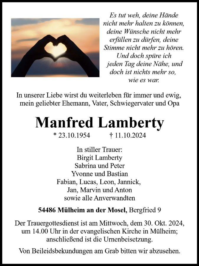 wir wünschen Ihnen von Herzen viel Kraft, dass Sie Menschen um sich haben, die Ihnen in dieser schweren Zeit beistehen und Halt geben. Zusätzlich können Sie auf dieser Gedenkseite Erinnerungen teilen und so das Andenken gemeinsam wachhalten.