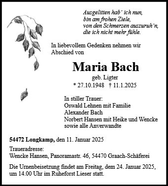wir wünschen Ihnen von Herzen viel Kraft, dass Sie Menschen um sich haben, die Ihnen in dieser schweren Zeit beistehen und Halt geben. Zusätzlich können Sie auf dieser Gedenkseite Erinnerungen teilen und so das Andenken gemeinsam wachhalten.
