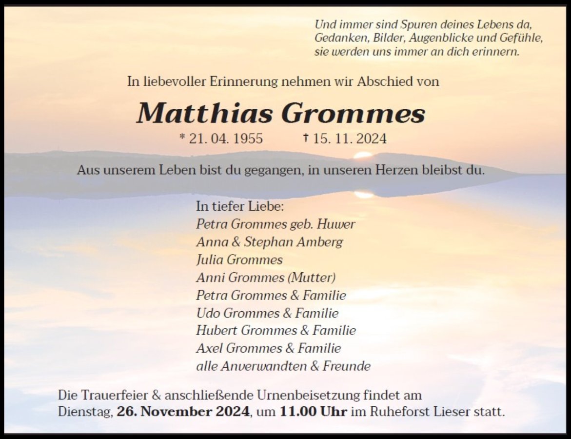Tief betroffen haben wir die Todesanzeige von Matthias gelesen.